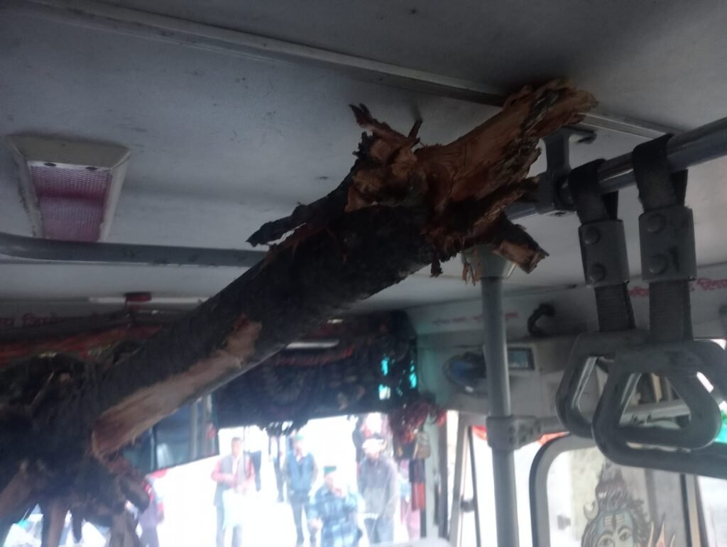 चालक चुनी लाल ने बताया कि वह धीरे-धीरे बस को चैड़ा खड्ड की ओर ले जा रहे थे, तभी अचानक पहाड़ से एक बड़ा क्याल का पेड़ आ गिरा और सीधे बस के अगले हिस्से पर जा लगा। टक्कर इतनी जोरदार थी कि पेड़ शीशा तोड़कर बस के अंदर तक पहुंच गया। हादसे में फ्रंट सीट पर बैठे एक युवक को हल्की चोटें आईं, जबकि अन्य सभी यात्री पूरी तरह सुरक्षित रहे।