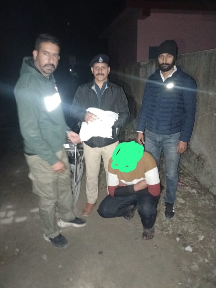 सिरमौर में नशे के खिलाफ चल रहे अभियान के तहत SIU सिरमौर की टीम ने एक और बड़ी कामयाबी हासिल की है। मिली जानकारी के अनुसार शुक्रवार को SIU टीम ने गश्त और नशा रोकथाम अभियान के दौरान पावंटा साहिब में यमुना नदी के तट के पास एक व्यक्ति से भारी मात्रा में चरस बरामद की। पुलिस के अनुसार, आरोपी की पहचान तालिब अंसारी पुत्र खलील अंसारी, निवासी नजद सरिये वाली गली, मुस्लिम बस्ती, विकासनगर, जिला देहरादून (उत्तराखंड), उम्र 28 वर्ष के रूप में हुई है। SIU टीम ने तलाशी के दौरान उसके कब्जे से 1 किलो 4 ग्राम चरस बरामद की। पुलिस ने आरोपी के खिलाफ ND&PS Act के तहत मामला दर्ज कर उसे मौके पर ही गिरफ्तार कर लिया गया। आरोपी को आज माननीय अदालत में पेश किया जाएगा।