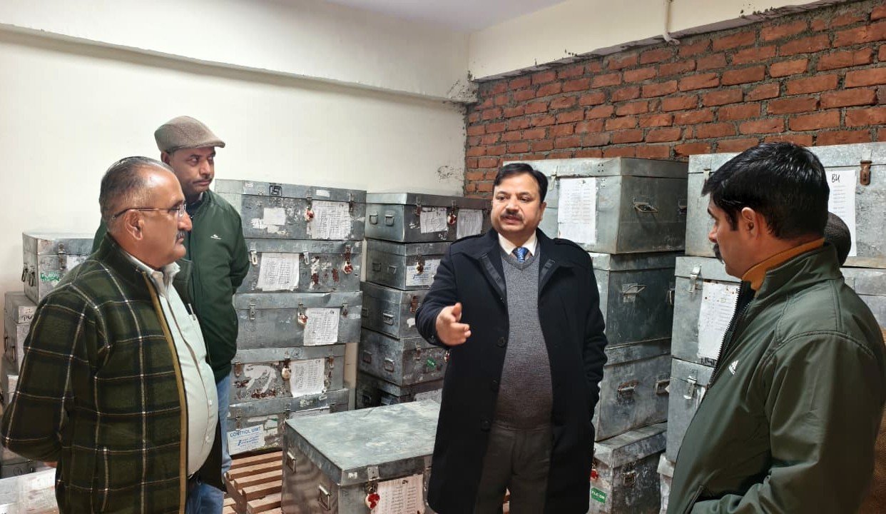 जिला निर्वाचन अधिकारी एवं उपायुक्त अनुपम कश्यप ने आज अधिकारियों और राजनीतिक दलों के प्रतिनिधियों के साथ फागू स्थित ईवीएम वेयरहाउस का त्रैमासिक निरीक्षण किया। उन्होंने ईवीएम की सुरक्षा के लिए पुलिस गार्द, डयूटी रजिस्टर, अग्निशामक यंत्रों, सीसीटीवी कैमरा, बिजली व्यवस्था सहित अन्य चीजों की जांच की। उन्होंने बताया कि ईवीएम वेयर हाउस के निरीक्षण में सभी चीजें व्यवस्थित पाई गई हैं।इस मौके पर उपमंडलाधिकारी (ना०) ठियोग डॉ शशांक गुप्ता, नायब तहसीलदार निर्वाचन संजीव शर्मा सहित इंडियन नेशनल कांग्रेस व भाजपा से प्रतिनिधि तथा निर्वाचन विभाग के अन्य कर्मचारी भी मौजूद रहे।