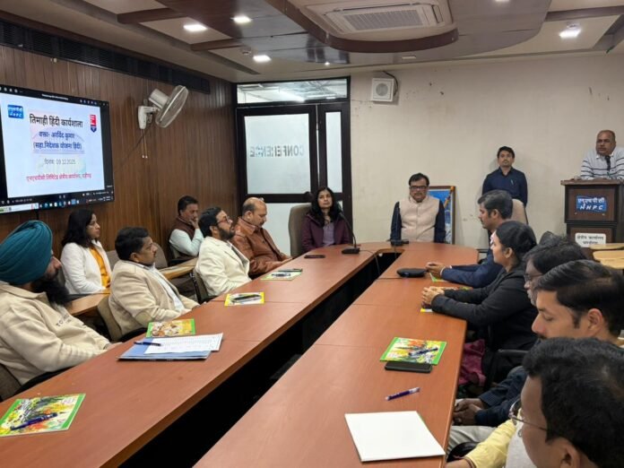 एनएचपीसी लिमिटेड क्षेत्रीय कार्यालय चंडीगढ़ में कार्यपालक निदेशक के मार्ग दर्शन में दिनांक 09 दिसंबर 2025 को पूर्ण दिवसीय हिंदी कार्यशाला का आयोजन किया गया। इस कार्यशाला के दौरान पूर्वाह्न के सत्र में अतिथि वक्ता के रूप में हिंदी शिक्षण योजना, गृह मंत्रालय ,भारत सरकार से अरविंद कुमार -सहायक निदेशक (टंकण एवं आशुलिपि) ने हिंदी टंकण, इन्स्क्रिप्ट(फॉन्ट),यूनिकोड तथा प्रबोध, प्रवीण एवं प्राज्ञ के विषय पर व्याख्यान दिया तथा इनके प्रयोग की सुगम प्रक्रिया के बारे में विस्तारपूर्वक चर्चा की।