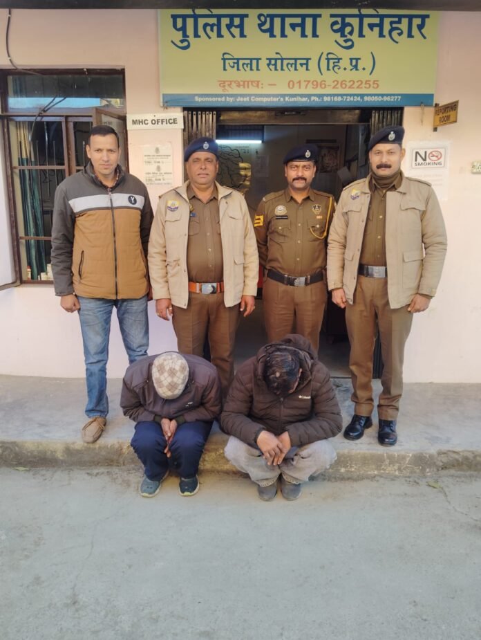 दिनांक 10-12-2025 को जब पुलिस थाना कुनिहार की एक टीम थाना क्षेत्र में गश्त व अपराधों की रोकथाम हेतु मौजूद थी तो उक्त टीम को गुप्त सूत्रों से सूचना मिली कि कुफ्टू की तरफ से एक स्कूटी पर राजकुमार उर्फ़ बाज़ी तथा संजय कुमार नाम के दो व्यक्ति बैठकर कुनिहार की ओर आ रहे है जो मादक पदार्थ अफीम व चरस बेचने का धन्धा करते है, जो आज भी भारी मात्रा में चरस व अफीम को बेचने के लिए लाये है जो इसे कुनिहार क्षेत्र में बेचने की फिराक में है I इस सूचना पर उक्त टीम द्वारा तत्परता से कार्यवाही करते हुए नाकाबंदी करके स्कूटी को रोककर चैक किया गया I चैकिंग के दौरान उपरोक्त स्कूटी पर बैठे 02 व्यक्तियों जिनके नाम संजय कुमार पुत्र श्री शालिग राम निवासी गाँव काटल, तहसील अर्की जिला सोलन हि०प्र० उम्र 44 वर्ष व राजकुमार उर्फ़ बाजी पुत्र श्री अमीचंद निवासी गाँव रॉ डाकखाना मंजू तहसील अर्की जिला सोलन हि०प्र० उम्र 42 वर्ष मालूम हुए के कब्जा से 101 ग्राम अफीम व 407 ग्राम चरस बरामद की गई जिस पर पुलिस थाना कुनिहार में उपरोक्त अभियोग पंजीकृत किया गया I इस अभियोग के अन्वेषण के दौरान मामले में संलिप्त स्कूटी को जब्त करके कब्जा पुलिस में लिया गया I दोनों आरोपियों को गिरफ्तार किया गया, जिन्हें आज दिनांक 11-12-2025 को माननीय अदालत में पेश किया जा रहा है I दोनों आरोपियों के पूर्व अपराधिक रिकॉर्ड की पड़ताल की जा रही है I मामले में जाँच जारी है I