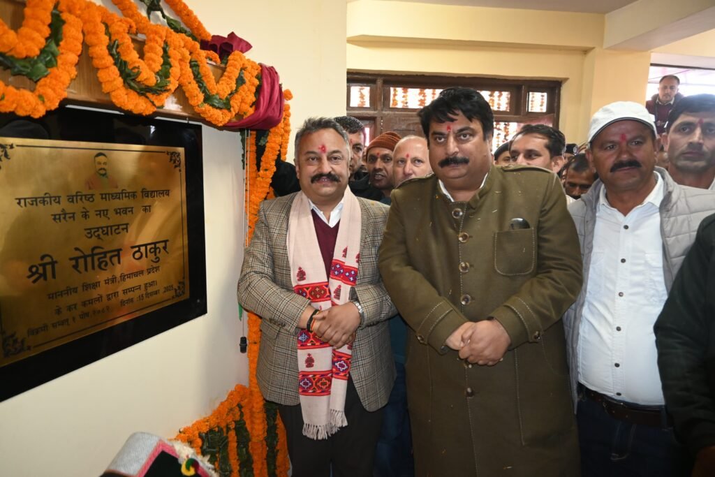 शिक्षा मंत्री रोहित ठाकुर ने आज चौपाल विधानसभा क्षेत्र के अंतर्गत सरैन में लगभग 6 करोड़ 7 लाख रूपये से निर्मित राजकीय वरिष्ठ माध्यमिक विद्यालय सरैन के भवन का लोकार्पण किया। इस अवसर पर उन्होने चौपाल और सिरमौर के आराध्य देवता बिजट के मंदिर में जाकर शीश नवाया और देवता से आशीर्वाद प्राप्त किया और साथ ही क्षेत्र कि समृद्धि और खुशहाली हेतू प्रार्थना की। सरैन में आयोजित एक समारोह के दौरान उन्होने क्षेत्र वासियों को बधाई देते हुए बताया कि सरकार प्रदेश के हर क्षेत्र में गुणवत्ता युक्त शिक्षा उपलब्ध करवाने हेतू प्रतिबद्ध है और आज इस संकल्प में एक और नया आयाम जुड़ा है। उन्होंने आशा व्यक्त की कि इस भवन के निर्माण से सरैन निवासियों और साथ लगते क्षेत्र के बच्चों को बेहतर शिक्षा प्राप्त करने में सुविधा होगी।