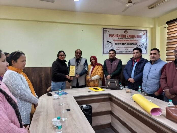 महिला एवं बाल विकास विभाग, हिमाचल प्रदेश के अंतर्गत बाल विकास परियोजना नाहन में आंगनवाड़ी कार्यकर्ताओं के लिए “पोषण भी, पढ़ाई भी” कार्यक्रम के तहत तीन दिवसीय कार्यशाला का आयोजन किया गया। कार्यशाला का शुभारंभ जिला कार्यक्रम अधिकारी श्री पवन गर्ग ने किया। इसमें परियोजना क्षेत्र की 70 आंगनवाड़ी कार्यकर्ताओं ने भाग लिया।