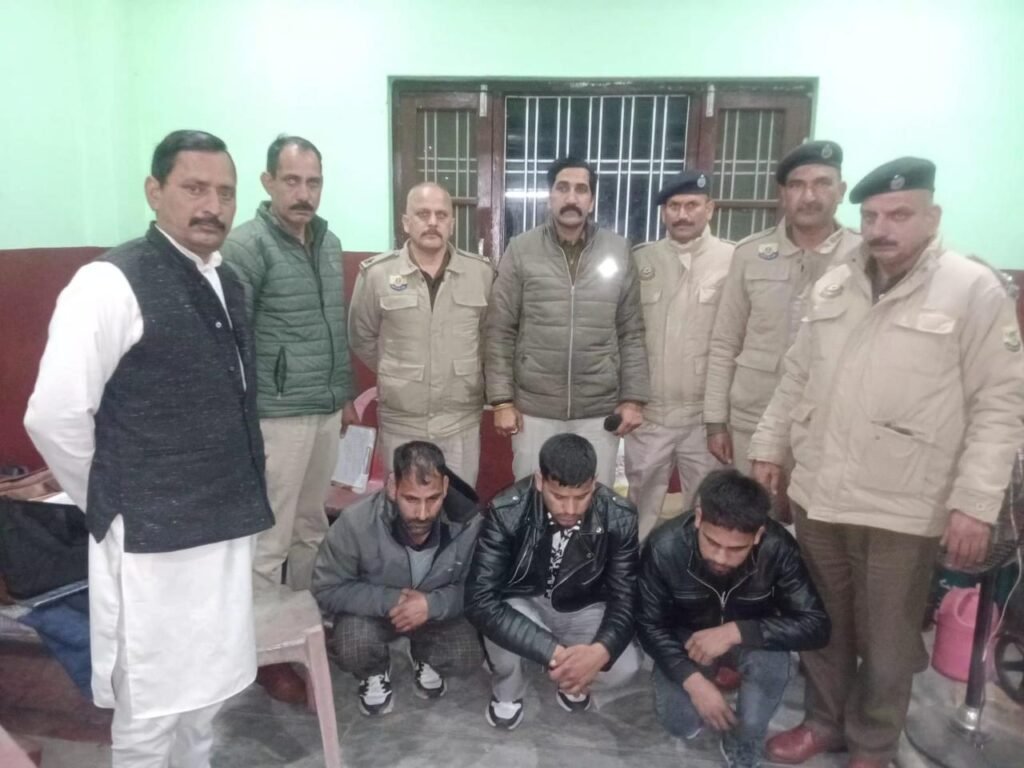 गिरफ्तार आरोपियों की पहचान ईश्वर दास (38) पुत्र चमारु राम, निवासी गांव बसुट, डाकघर थाची, तहसील बालीचौकी, तीर्थ राज (23) पुत्र गणु राम, निवासी गांव चुढार, डाकघर थाची, तहसील बालीचौकी व जीवानन्द (22) पुत्र दुनी चंद, निवासी गांव डिंगली, डाकघर थाची, तहसील बालीचौकी, जिला मंडी के रूप में हुई है।