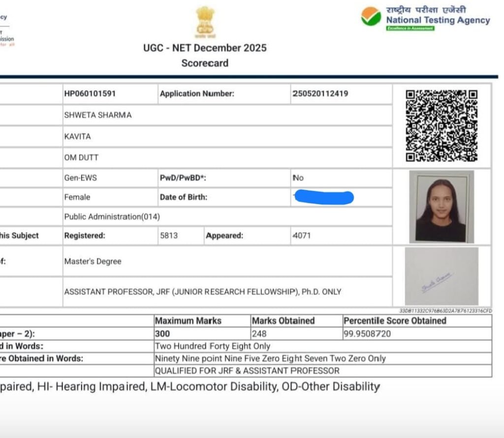 जिला सोलन के पपलोल क्षेत्र गांव रन्होग की बेटी श्वेता शर्मा सपुत्री श्री ओम दत्त शर्मा व माता श्रीमती कविता शर्मा ने UGC-NET के माध्यम से जूनियर रिसर्च फेलोशिप (JRF) उत्तीर्ण कर क्षेत्र का नाम रोशन किया है। श्वेता ने कड़ी मेहनत और लग़न से यह उपलब्धि हासिल की। उनकी प्रारंभिक शिक्षा पपलोल से हुई, जबकि स्नातक और परास्नातक की पढ़ाई हिमाचल प्रदेश विश्वविद्यालय शिमला से की। उनकी इस सफलता से परिवार और पूरे क्षेत्र में खुशी का माहौल है। श्वेता की उपलब्धि को बेटियों के लिए प्रेरणास्रोत बताया जा रहा है।