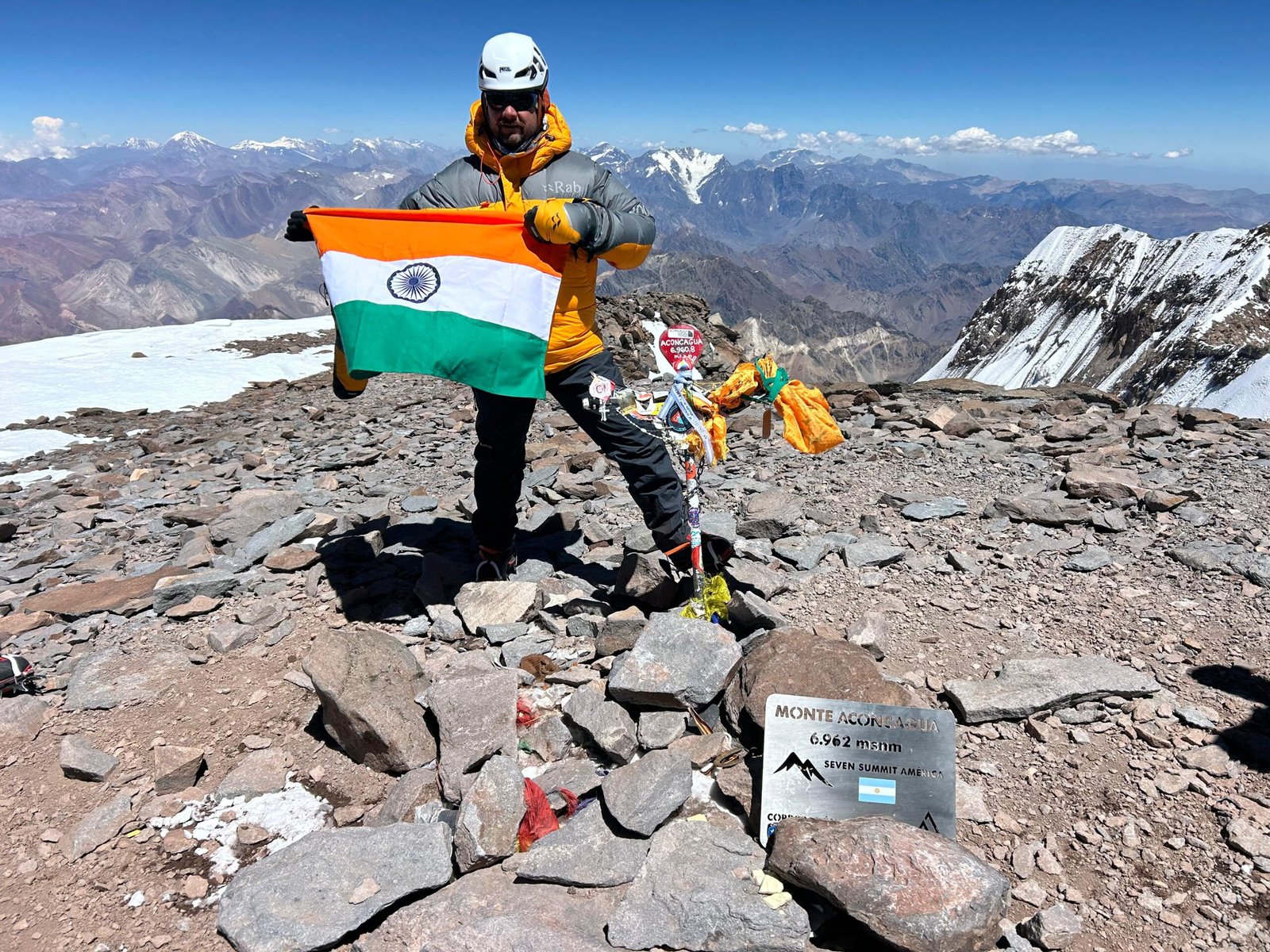 नायब सूबेदार भूपेंद्र सिंह ने माउंट अकोंकागुआ पर फहराया तिरंगा
