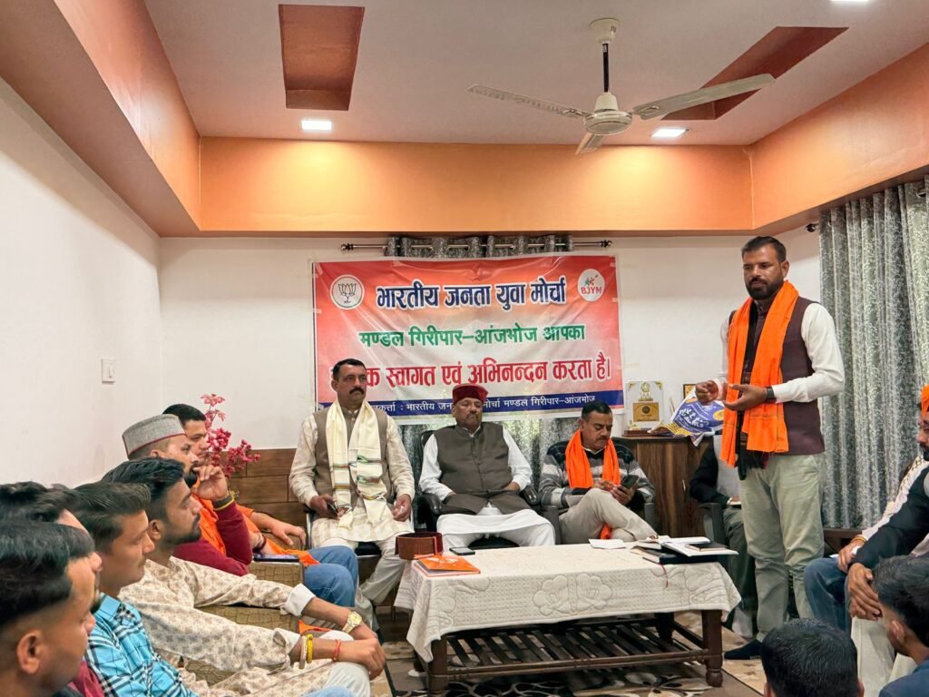 ग्राम पंचायत राजपुर के दिघाली में आज भारतीय जनता युवा मोर्चा मंडल गिरिपार-आँजभोज की परिचय बैठक युवा मोर्चा अध्यक्ष भगवान दास चौधरी की अध्यक्षता में संपन्न हुई। बैठक में क्षेत्र के अनेक पदाधिकारी एवं कार्यकर्ता उत्साहपूर्वक उपस्थित रहे।