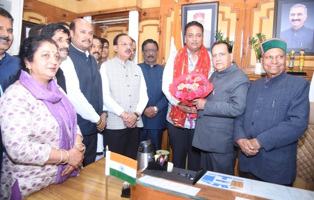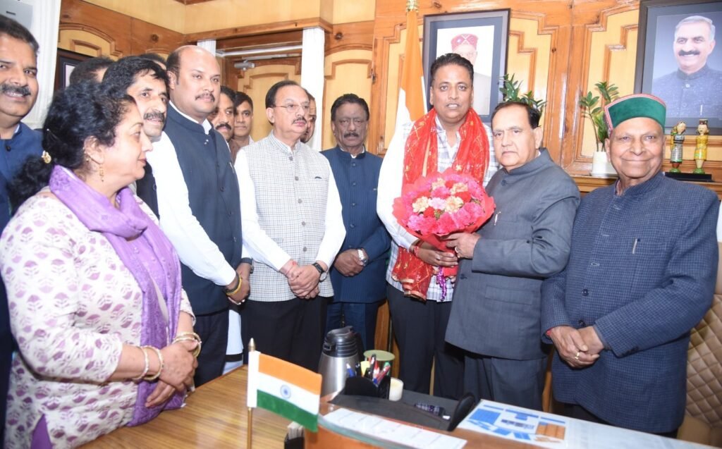 हिमाचल प्रदेश विधान सभा सचिवालय में निर्वाचन अधिकारी से राज्य सभा के लिए सांसद के रूप में  निर्विरोध निर्वाचित होने का प्रमाण पत्र हासिल करने के उपरान्त राज्य सभा सांसद अनुराग शर्मा ने हिमाचल प्रदेश विधान सभा अध्यक्ष कुलदीप सिंह पठानियां से उनके कार्यालय कक्ष में शिष्टाचार भेंट की। इस अवसर पर उन्होने विधान सभा अध्यक्ष को गुलदस्ता भेंट कर उनका आर्शीवाद लिया।