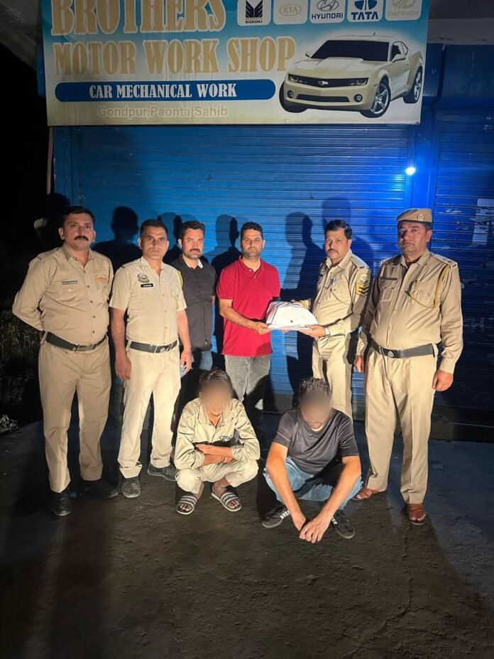 जिला सिरमौर पुलिस की स्पेशल डिटेक्शन टीम ने नशे के खिलाफ चलाए जा रहे अभियान के तहत बड़ी सफलता हासिल की है। पुलिस से मिली जानकारी के अनुसार पुलिस की स्पैशल डिटेक्शन टीम पाँवटा साहिब में गश्त व गुप्त सूचनाएँ एकत्र कर रही थी तो टीम को सूचना मिली कि रविकान्त उर्फ बन्टी पुत्र रतन सिंह निवासी गांव टोका नगला डा0 जामनीवाला तह0 पांवटा साहिब जिला सिरमौर हि0प्र0 अपने टेम्पो न0 HP17G-2868 मे भारी मात्रा मे नशीले कैप्सुल लेकर घुम रहा है जिसके साथ विकास पुत्र चन्द्र बाहन निवासी गांव मरवह डा0 सडोली तह0 बेहट जिला सहारणपुर उ0प्र0 भी टेम्पो मे है जो उपरोक्त दोनो टेम्पो लेकर पांवटा साहिब ट्रक युनियन के पास खड़े है। जिस सूचना पर टीम में त्वरित कार्वाही करते हुए उपरोक्त टेम्पो को रैड करके चैक किया जिसमें चैकिंग के दौरान कुल 1104 प्रतिबन्धित कैप्सुल बरामद हुए । इस सन्दर्भ में उपरोक्त आरोपियों के विरुद्ध पुलिस थाना पाँवटा साहिब में धारा 22,29-61-1985 ND&PS ACT के अन्तर्गत अभियोग पंजीकृत किया गया है। उपरोक्त दोनों का अदालत से पुलिस हिरासत रिमांड प्राप्त किया जा रहा है ताकि इनसे तफतीश के दौरान पता लगाया जा सके कि इतनी भारी मात्रा में प्रतिबन्धित कैप्सूल यह कहां से लाए थे तथा किन्हें बेचने की फिराक में थे ताकि इस पूरे रैकेट के पकड़ा जा सके । जिला सिरमौर पुलिस नशा पर पूर्ण प्रतिबन्ध लगाने के कृतसंकल्प है जिसके लिये अभियान जारी है।